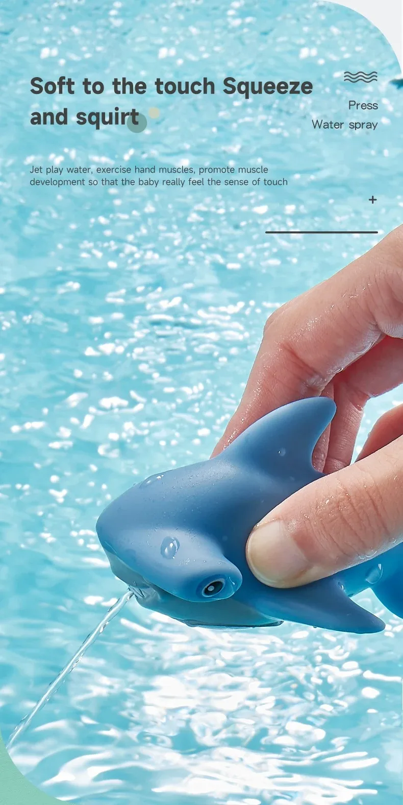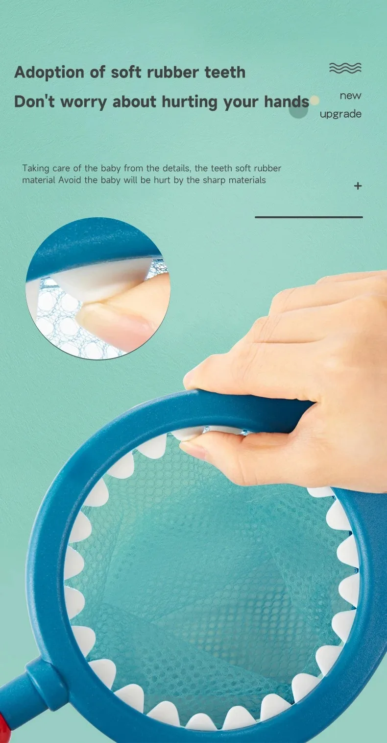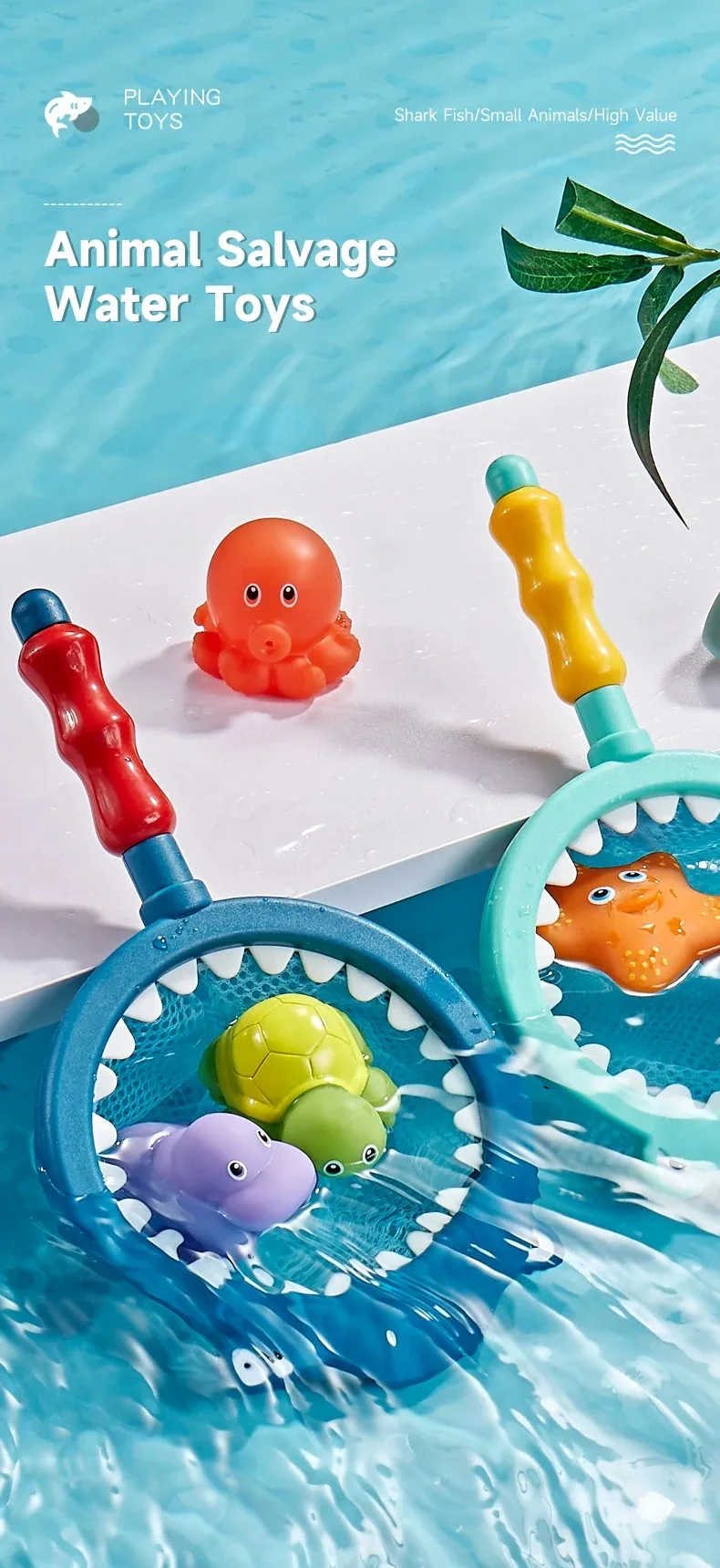 Baby Bath Toys, Turtle Spray Water Toy, Fish Net Catching Shark, Children Animal Squeeze Toys, Floating Water Play Set for Kids