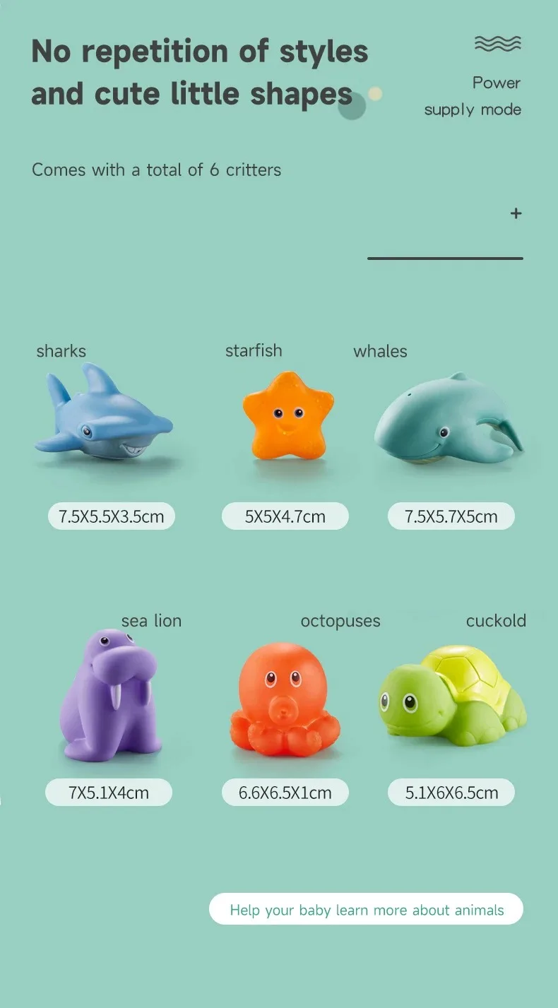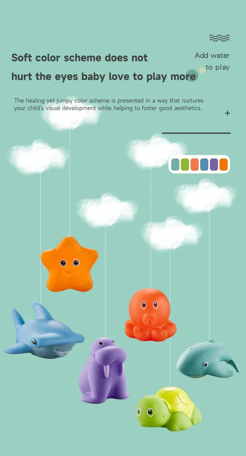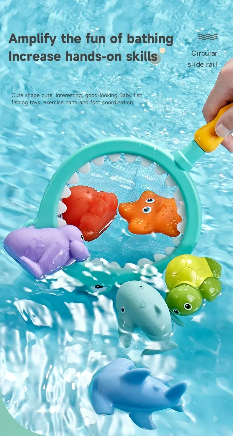 Baby Bath Toys, Turtle Spray Water Toy, Fish Net Catching Shark, Children Animal Squeeze Toys, Floating Water Play Set for Kids