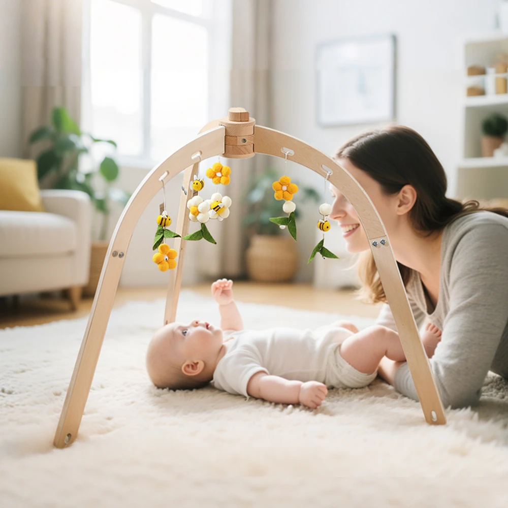 Baby Fitness Rack Wooden Frame Educational Fitness Activity Toy Gym Decoration can Hanging Pendants Sensory Gift Newborn Nursing