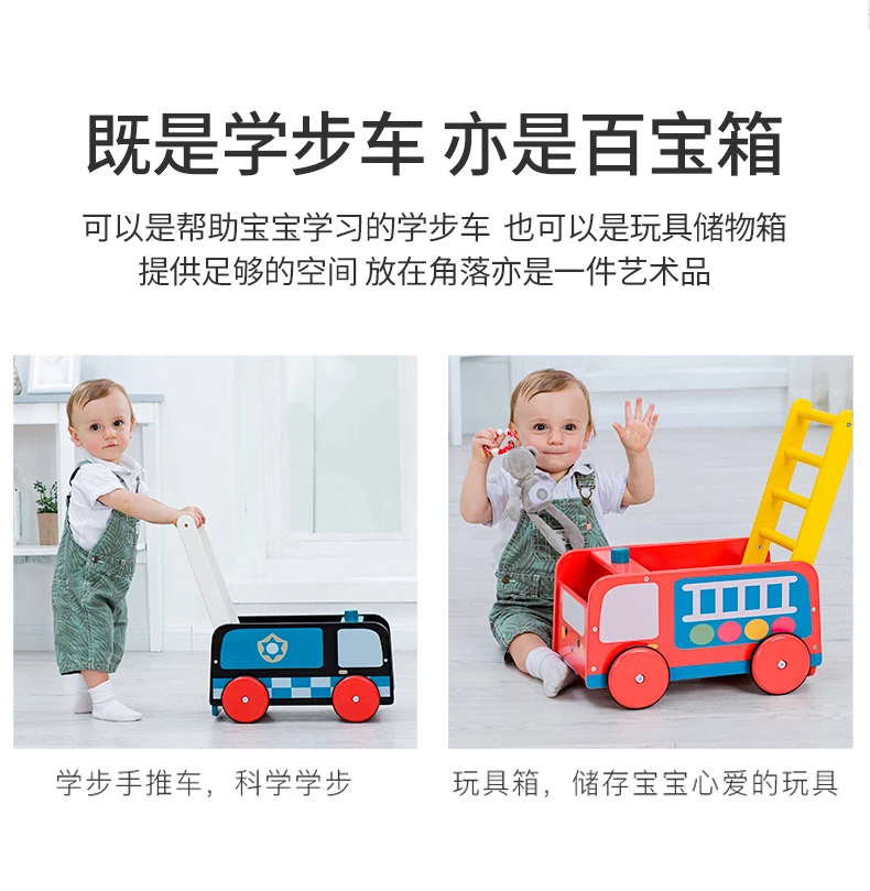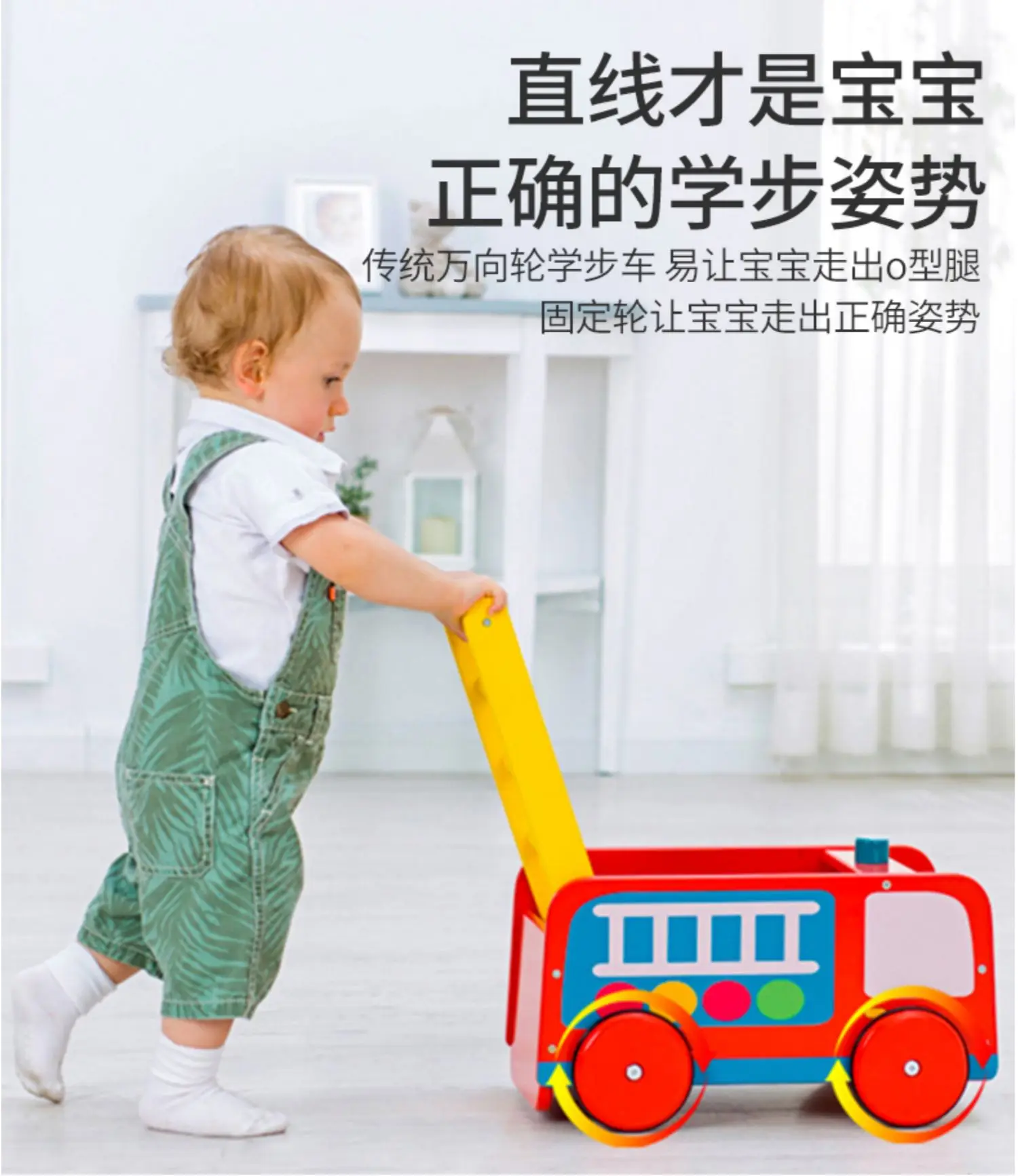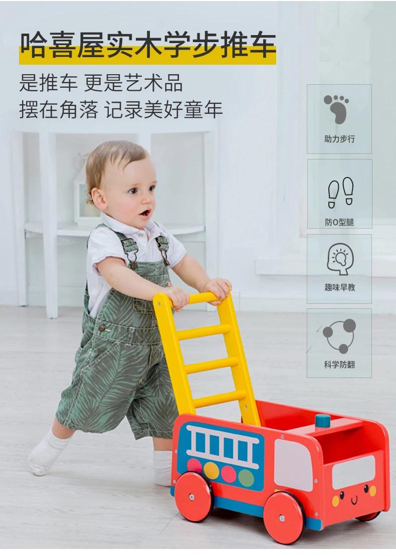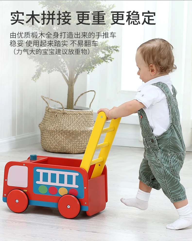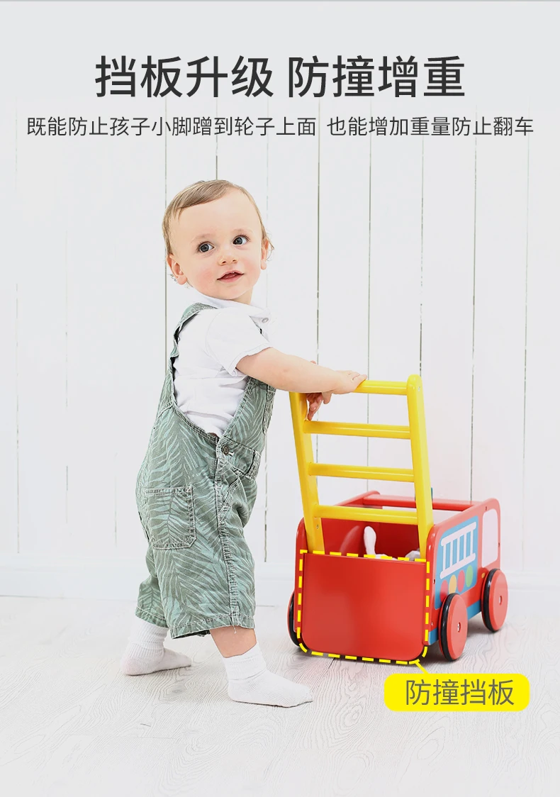 Fun Early Education for Children To Learn To Walk O-legged Wooden Baby Walkers, Hand Pushed Toys Storage Box Walker for Baby